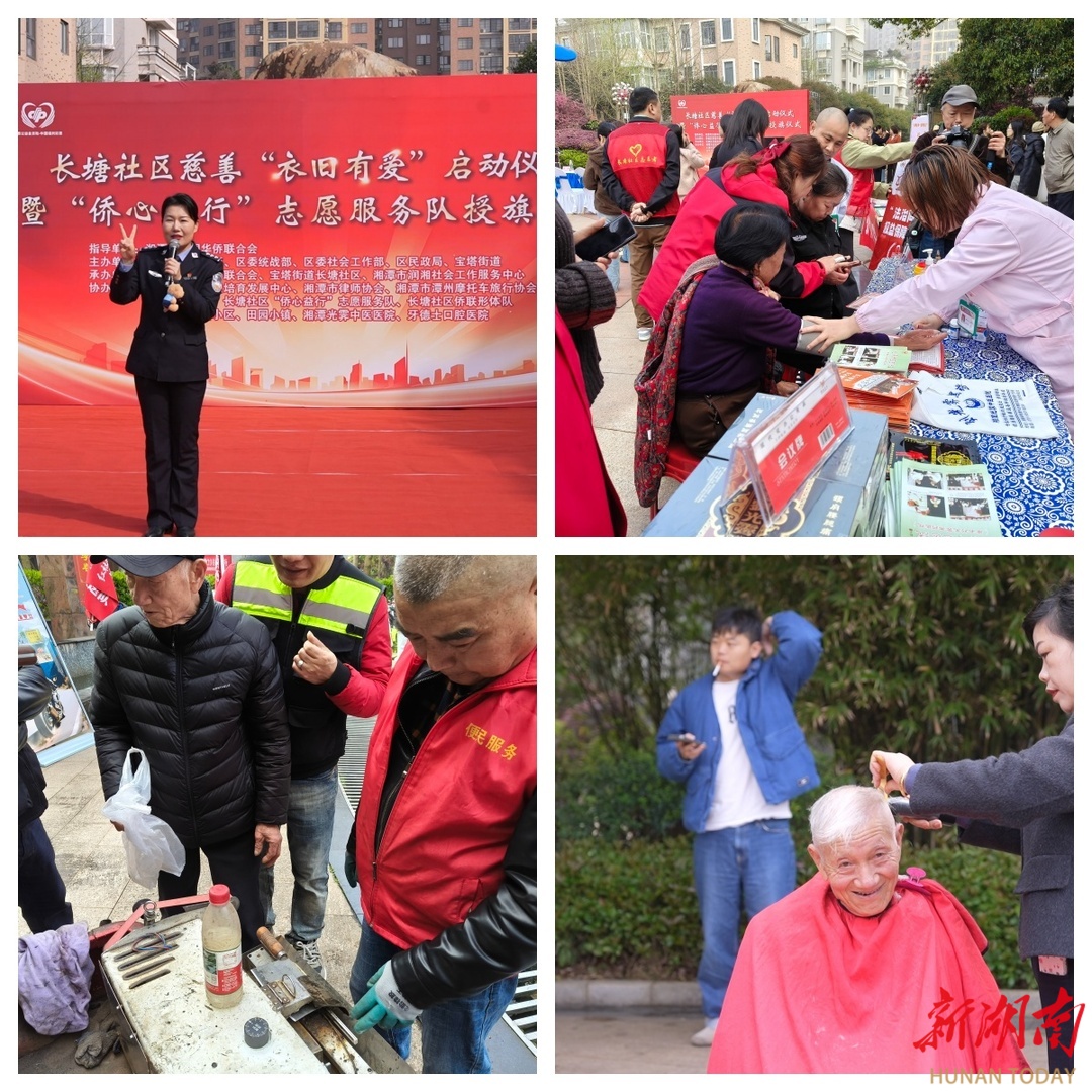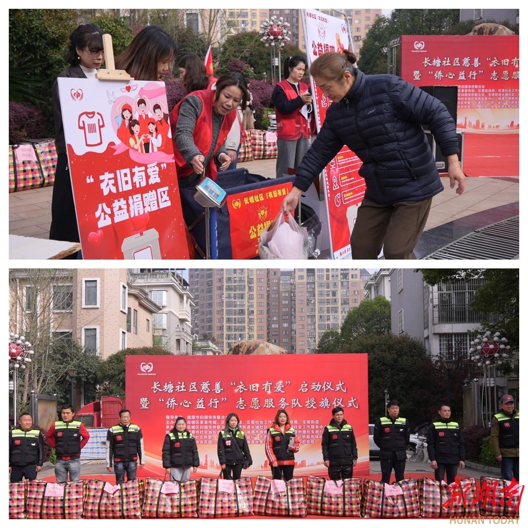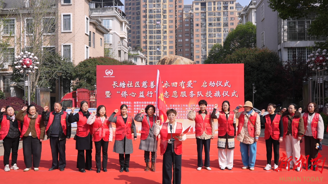 春风送暖传大爱,侨心聚暖共前行。4月1日上午,由湘潭市归国华侨联合会指导,岳塘区委宣传部、区委统战部、区委社会工作部、区民政局、宝塔街道主办,岳塘区归国华侨联合会、宝塔街道长塘社区、湘潭市润湘社会工作服务中心承办,联合区相关单位、爱心社会组织、志愿服务团队及新就业群体代表共同举办的长塘社区慈善 “衣旧有爱” 启动仪式暨 “侨心益行” 志愿服务队授旗仪式 在岳塘区宝塔街道长塘社区金侨中央花园广场圆满举办。为社区居民、侨界群众、困难群体及新就业群体送上一场集慈善捐赠、志愿服务、普法反诈、便民服务于一体的公益暖心盛宴。